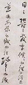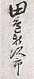 紙本肉筆・・縦14.5cm、横4.5cm 「田辺新次郎」の署名が有り、軸外には「田邊石庵筆」 と有る。田邊石庵は尾張の人で、本姓は村瀬氏、名は 誨輔、通称は新(晋)次郎、字は季徳、号を石庵・旭斎 などと称し、学業を秦滄浪に学んで昌平黌の教授とな り、後に甲府徽典館の学頭となり、明・清諸儒の伝記 や文粹を編修し、門弟の講習に供した儒者で、明治随 一の欧州通として知られた儒者田辺蓮舟の父親であ り、また榎本武揚が6才で入門したのが、この石庵の 塾である。 |