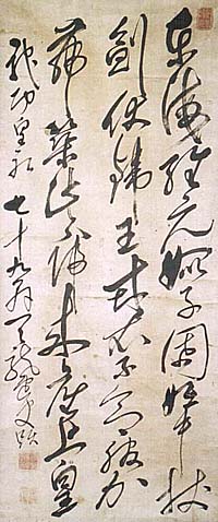 傳・天龍道人渋川虚庵、草書七絶(江戸時代、AD1718〜1810) |
