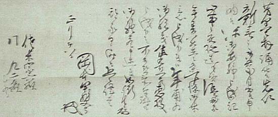 「岡本甲斐守」の横に花押が書かれている。岡本修正齋は京の人で、名は胡保、号を