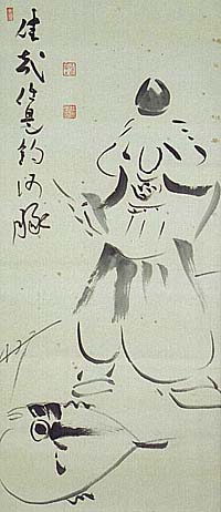 適軒淡川康一、恵比寿圖併草書七字讃(現代、AD1902〜1977)