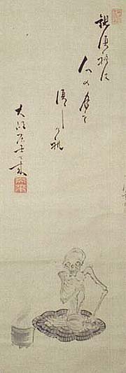 天來牧岡左逸門、骸骨圖俳句讃(江戸時代、AD1786〜1861)