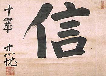 錦陵小笠原忠忱、楷書一字(近代、AD1862〜1897)