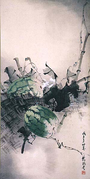 西瓜の図である。「戊午仲夏、乾海書」と有る。