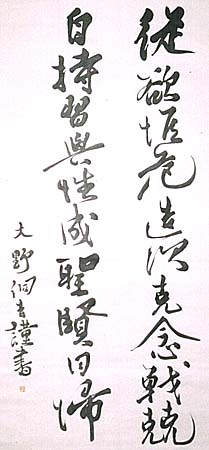 「大野トウ吉謹書」の下に陰刻「大野トウ吉」の落款が押されている。