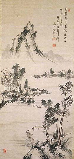 石雲藤田良昌、山水圖併行書十四字讃(江戸時代、AD1750〜1850)
