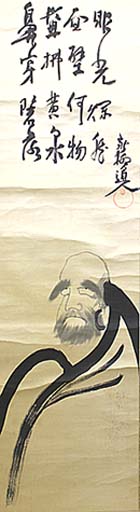 新柳矢田績、達磨圖併行書十六字讃(近代、AD1860〜1940)