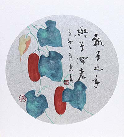 蒼青齋藤公男氏、烏瓜圖併行書八字讃(現代)
