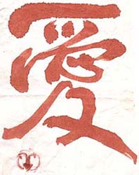 靖闇西川寧、朱墨行書一字(現代、AD1902〜1989) |