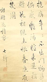 明霞宇野鼎、行書七絶(江戸時代、AD1698〜1745)