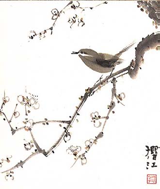 櫻江子小嶋正雄、梅木囀鶯圖色紙(近代、AD1900〜1999)