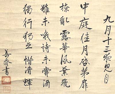 善齋永田道慶、行書七絶(江戸時代、AD1597〜1664)