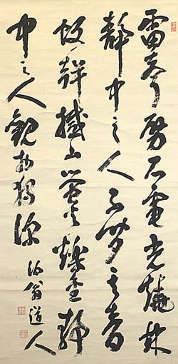 紙本肉筆・・縦129cm、横64cm 「泊翁道人」の横に、陰刻「西邨茂樹」と陽刻「泊翁 道人」の落款が押されている。西邨泊翁は江戸の 人で、名は重器・茂樹、号を泊翁・樸堂・庸斎などと 称し、佐倉支藩佐野藩執政西村芳郁の子で、漢学 を藩校成徳書院で安井息軒に、蘭学を佐久間象山 に、英学を手塚律蔵に学び、堀田正睦の老中首座 就任に伴い、貿易取調御用掛を務め、維新後は福 沢諭吉・森有礼・西周らと啓蒙学術団体「明六社」を 結成し、漢字廃止論を提唱する一方で漢学者集団 の「洋々社」を依田学海・大槻磐溪らと結成し、宮中 顧問官や文部省編輯局長等を務め、日本道徳再建 の為に「修身学社」(現、日本弘道会)を創設した、 啓蒙思想家の教育者である。 |