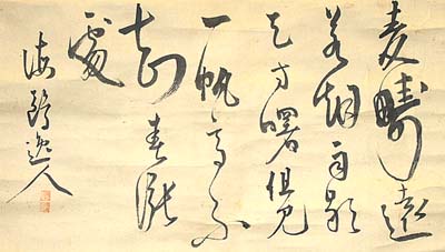 紙本肉筆・・縦27.5cm、横47cm 「海鷗逸人」の下に、陰刻「不??庵」と陽刻「????」の落款 が押されている。菱田海鷗は大垣の人で、名は重禧、号を海鴎 と称し、大垣藩儒者菱田毅斎の六男で、幼にして家学を受け、 次いで皆川淇園や安積艮斎らに学び、帰郷して家塾を開き講 説に従事するが、小原鉄心の推挙で大垣藩校教授となり、藩主 の侍講も兼ねた儒者で、特に詩文に秀でている。維新後は、文 部省書記官等に任じられるが、致死して講説を事としている。 |