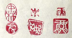 気晴らしの為に1時間程で刻した小印の六顆で、上段右から陽