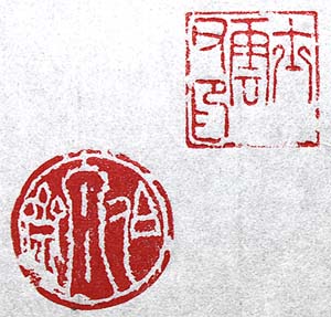二顆で、右が篆文陽刻の「士雲父印(字印)」で、左が金文陰