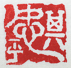 縦横・・2.4×2.4cm 金文を陰刻で彫った一顆で、「其恕乎」(其れ恕か)である。 有名な『論語』の中の孔子の詞である。人が一生行えるこ と、其れは「思いやり(恕)であろうか」と言っている。人は 誰しも「思いやり」は持っているが、其れを表す言葉や行 動が、瞬時に出てこないのが悩みであり、後悔である。 行わんと欲するも行うこと能わざるが凡人であろう。 |
