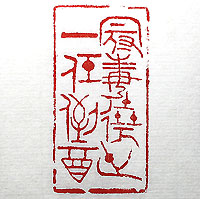 金文朱文で刻した、「冠毒遶世、一任倒酒(冠毒世を遶る、