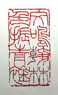 先生の指導を受け二行四字で布字し、小篆で刻した「文
