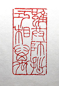 師兄の作品を見て感じた事を、小篆で刻した、「雖共