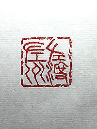 手土産代わりに依頼の有った言葉を、金文で刻した「佐
