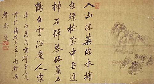 雪齋増山正賢、山圖併行書二十八字讃(江戸時代、AD1754〜1819)