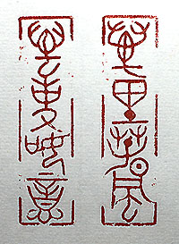 縦横・・6×1.5cm 新春に當り、吉祥の言葉を金文で刻してみた。「萬里 春風、萬事如意」(萬里春風あり、萬事意の如し)であ る。三年來のコロナが終息し、ウクライナ紛爭が終結 すれば、萬里春風となるであろうが、悲しい事にウクラ イナの春は遠い様に思われる。また人の世は萬事意 の如からざるが常道であれば、それも亦た善哉、善 哉であろうか。 |