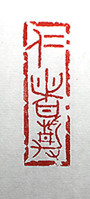 縦横・・6.1×2cm 呉大澂の『篆文論語』を讀んでいて、雍也篇のある句が 氣になった。知者は水を樂み仁者は山を樂しむ。知者は 動き仁者は靜、知者は樂しみ仁者は壽なり、である。朱 子の註に因れば、知者は事理に達しているから水の如 く動き、仁者は義理に安んじているから山の如く靜なの であると謂う。では愚者はどうであろうか、色々思い悩ん だが、己なりの結論は得た。天地が逆さになってもなれ ない仁者の事を金文で刻してみた。「仁者靜」である。 |