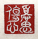 縦横・・2.1x2.1cm 長年教壇に立って來た爲、人は千差萬別、思考も人そ れぞれ、其れらを互いに認め合って、對應するものだ、 己の意に沿わない事等掃いて捨てる程有る、と思って いたが、現實には其れと異なる社會が有り、正直に答 えても亦たリスペクトしても、相手の意に沿わない限り は、機嫌を損ねて罵倒される、と言う事が七十の半ばに なって理解された。最近の出來事をあれこれ思料してい たら、阮籍の「詠懐詩」が心に浮かんだ。其處で其の一 節を戰國篆文で刻した、「憂思傷心」である。「心」が三 個も重なる言葉など、篆刻家の方は決して選ばれない であろうが、己が心に彊く浮かんだので、敢えて刻した 遊びである。 |