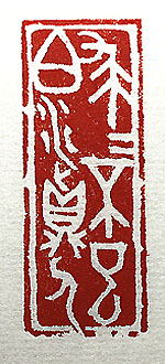 縦横・・5.1x2cm 最近は人生百年と言われるが、元氣でなければ意味が 無い。其の爲に身體のメンテナンスも厭わないが、運動 にしろ趣味にしろ養生にしろメンテナンスにしろ、其れを 行うには先立つ物が必要である。其れが無い限りは何 を思っても實現不可能なのである。長生きすればする 程、「金が敵」の様相を呈して來る。餘り「金、金」等とは 言いたく無いが、どんなに見栄を張った所でも、矢張り 「金」は必要である。金文で刻した「求求不已白水真人」 (求め求めて已まざるは白水真人なり)である。白水真 人を合字にすると「泉貨」となり、要するに「お金」の事で ある。 |