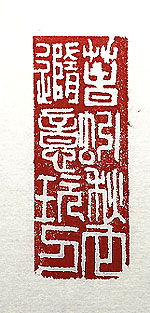 縦横・・5.1x2cm 七十を過ぎてから篆刻を習い始めたが、實は其れまで 筆で文字を書いた事など全く無い。小生の文字の下手さ 加減は群を抜いており、自分で書いた文字が數日後に は自分自身で判讀出來ないと言う有様で、如何ともし難 し悪筆の下手文字である。文字の下手さを形容した詞 に「春蚓秋蛇」と言うのがが有るが、これは『晉書』の王 羲之傳の制に有り、蕭子雲の文字を評した言葉である。 故に、下手と言っても、其のレベルや内容は遙かに高く 、小生如きの下手さ加減を言い表すのは不遜であり、 甚だ憚られるのであるが、他に氣の利いた詞を思い出 出せなかった爲、敢えて使わせてもらい、印篆で刻した 「春蚓秋蛇随意玩刀」(春蚓秋蛇なるも意に随ひ刀を玩 ぶ)である。 |