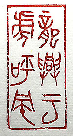 縦横・・5x2.4cm 戰國篆文で刻した、「龍興雲虎呼風」(龍は雲を興し虎は 風を呼ぶ)である。今世界では、龍虎もどきの輩が自らの 正義を揚言し、風雲を巻き起こしているが、其の下では多 數の無辜の人々が逃げ惑い苦しみに喘いでいる。此を止 めるには時の氏神所謂手打ちの仲裁人・媒酌人の登場 が必要で、其れを可能とする貫目と見識有る人或いは國 家の登場が待たれるが、如何せん未だ見當たらないの は不幸な事である。歐州で發生した風雲は中東に飛び火 したが、亜細亜に移らない事を祈って已まない。しかし、 此處にも龍虎もどきが存在していれば、一應平和な日本 に居ても不安は盡きない。現場の報道を、恰も戰爭映画 でも見ているが如く眺めている己が悲しい。 |