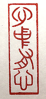 縦横・・7.3x2.5cm 物事は何事も己の心の持ち様如何に因って決まる。『管 子』心術下には、「心の中に又心有り、・・・凡そ心の形、 過知ならば生を失ふ」と有る。其處で戰國秦篆文で刻した 「心中有心」(心中に心有り)である。在職中は良きにつけ 悪しきにつけ、常に何かに追われている感じで、心の安ま る時は無かった。退職後こそ心安まる生活をと思ってい たが、親族や知友との永久の別れや己自身の病魔に苛 まれて、矢張り安らぐ時が無い。我が心中の心は、常に 何かざわついている。 |