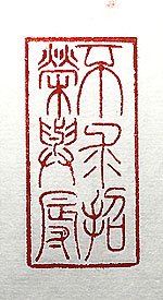 縦横・・5x2.4cm 小篆で刻した「不求招栄與辱」(栄と辱とを求招せず)であ る。己が生涯に於いて栄を求めたり、辱を招く様な事はす るまいと心懸けて來たつもりである。しかし、榮は言わず もがなでもあるが、本質的に其の能力が無かった爲、求 める氣など更々無かった。一方辱の方は、注意をしては いたが、己の性分と不徳の致す所、度々招いてしまった。 然りと雖も、例えタイトロープ的ではあっても、無事に定年 まで職を奉じる事が出來たのは、善哉、善哉である。これ も我が人生の浮き沈み、案外捨てた物では無い。 |