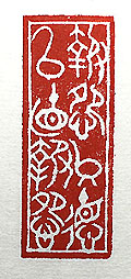 縦横・・5.2x2cm 老子と孔子の言葉を並べてみた。思想的に嚴密に解釋 すれば、各々意味合いは異なる。しかし基本的には、共 に負の連鎖怨みの連鎖を斷ち切る事、要するに「怨に報 ゆるに怨を以てしない」と言う事を表現している。『老子』 第六十三章と『論語』憲問篇の句を、金文で刻した「報怨 以コ、以直報怨」(怨に報ゆるにコを以てし、直を以て怨 に報ゆ)である。「コ」と「直」とでは意味合いが異なるが、 決して「怨」で無い事は明白である。此の言葉、紛爭當事 國の各指導者に、善く善く考えて頂きたい。當事者が己 の正義を稱揚している現状を見るに付け、敗戰後の日本 に對して或る言葉を投げかけ、其の様に對應された某國 の某総統を思い出してしまう。其處には某総統の政治的 思惑が有る事は明白であるが、其れでも矢張りインパク トの有る對應だったと思う。 |