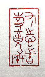 縦横・・5x2.5cm 古璽文で刻した「有志者事竟成」(志有る者は事竟に成 る)である。後漢の光武帝の言葉として、『後漢書』耿弇傳 に有る。何事も志を立てない限りは成功しないと言う事で ある。小生は、妻や周圍から病気もしたのだからいい加 減煙草を止めろとさんざん言われているが、呼吸器系の 病気をしない限りは、決して止めないと志を立てている。 度し難いまでの馬鹿老人である事は、己が一番良く分か っているが、それでも煙草は止められない。 |