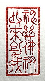 縦横・・5x2.5cm いよいよ新たな辰年が始まった。今年は三日後に大き な手術を控えている。じたばたしても始まらないが、心 境としては無事に手術が成功する事を願って、天佑神 助を求め、こんな時だけ神頼み佛頼みである。不謹慎 とは分かっているが、神佛に縋る思いが抑えきれない 。今年の初彫りは金文で刻した、「神慈佛佑共來助我 」(神慈佛佑共に來たりて我を助けよ)である。 |