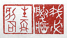 縦横・・2.4x2.5cm いよいよ明日から一週間入院して、半年に及ぶ抗癌剤治 療の開始である。小生は元來刃物傷には彊く、四回にも 及ぶ手術も難なく乗り越えたが、逆に嘔吐や熱には極め て弱い體質であれば、恐らく抗癌剤の諸々の副作用での たうち回る半年になり、印刀を持つ氣力さえも生じないで あろう。悩み嘆いた所でどうなるものでも無ければ、これも 天から與えられた試練と前向きに受け止めている。其處で 治療に臨むに當り、己の思いを金文と甲骨文で刻した、「 我必勝癌」「生再刻石」(我必ずや癌に勝ち、生きて再び石 を刻さん)である。 |