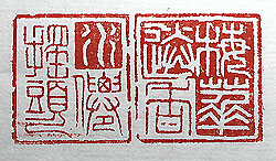 縦横・・2.5x2.4cm 體力彊化の爲に日々散歩をしているが、其の道すがらに 目にした事を、即興的に刻してみた。古来「期に先だちて 風和ぎ雨暖かなり」と言うが、己の肌膚感覺で言えば、時 たま春を感じさせる。極めて即物的な言葉で甚だ俗っぽい が、印篆で刻した朱白の二聯で、「梅花送香」「水仙揺頭」 (梅花は香りを送り水仙は頭を揺らす)である。痺れは繼續 しているが、何とか複雑な文字も細い線で刻せそうである。 |