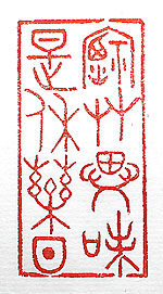 縦横・・5x2.5cm 抗癌剤の休薬日に入った、一週間すれば再び投薬で あるが、取り敢えずは休息である。朝食後の一本、普 段と變わらぬはずであるが、何故か美味しく感じた、單 なる氣持ちの問題に過ぎない事は、重々分かってはい るが、其れでも美味しいと思った。其處で一句、「休薬 日、タバコの味も異なれり」、金文で刻した「煙草異味 是休薬日」(煙草味を異にするは是れ休薬日)である。 |