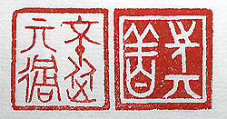 縦横・・2.5x2.3cm 権力者に仕える者は、決してイエスマンであってはならない 、善言・善行であれば其れを先に行い、間違っていれば決 して其れには從わない、と言う事である。諫言の心と輔弼 の心を、同時併用するのが仕える者の態度であると言う。 『國語』楚語上の一節を古璽文で刻した、「先其善」と「不 從其の過」(其の善を先にし、其の過には從はず)である。 |
