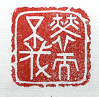 縦横・・3.1x3.1cm 『周易』繋辭上の一句を金文で刻した、「勞而不伐」(勞 するも伐《ほこ》らず)である。勞苦を重ねても、決して其 の事を誇らないのが君子であると言う。己は凡人である が故に、勞苦が有るとついつい口にするが、其れは誇 っているのでは無く、單に愚痴っているだけである。人 は口に出す事に因って、勞苦が和らぐ事も多々有ると 思う。などと勝手な理屈を付けて、ああだこうだと愚痴っ ている愚かな己が居る。 |