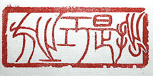 縦横・・3.2x7.7cm 清朝の畫家として有名な高其佩の言葉を、小篆で扁額 風に刻した、「拙是巧之方法」(拙は是れ巧の方法)であ る。己が拙い事を分かっているが故に、巧みになろうと 努力研鑽する、要するに拙である事は巧に到る方途な のである。己は拙を克服すべく日々石を彫っているが、 決して巧に到る事など無いであろう、何故なら基本中の 基本である筆文字の鍛錬を殆どしないからである。己 の文字の結體のひどさには、己自身が呆れ果てている が、其れでも石を彫り續ける馬鹿老人である。 |