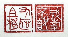 縦横・・2.4x2.4cm 『論語』八佾篇と爲政篇の一句を、それぞれ古璽文で刻し た、「成事不説」(成事は説かず)と「有恥且格」(恥じること 有りて且つ格《いた》る)である。何事も起きてしまった事は 、とやかく言っても始まらないし、禮節を以て對應すれば、 例え變な相手でも恥じる心が生じ善に至ると言う。しかし、 現實には成ってしまった事をあれこれ論い、禮節を以て 接すれば接するほど怒らせてしまう事が多々有る、故に 人と話すのは難しい、特に顔の見えないネット社會に於い ては尚更である。 |