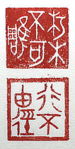 縦横・・2.3x2.4cm 『論語』公冶長篇と雍也篇の一句を、それぞれ金文で刻し た「朽木不可雕」(朽木は雕る可からず)と、「行不由徑」( 行くに徑《こみち》に由らず)とである。例え朽木は彫る事は 出來なくても、何か使い道は有る。同様に人は良き點が必 ず一つは有るものである。其れを見つけて褒めるのが、教 壇に立つ者の本質的務めであると思い、その考えを四十五 年間實行して來た。其れは人様から見ればつまらぬ自己満 足の「徑」に過ぎないだろうが、己にとっては決して「徑」では 無く己自身の「大道」でもあった、と思っている。師に言われ た言葉「一藝に秀でろ、そしたら世間は放って置かない」と 、人には必ず一藝が有ると信じている。 |