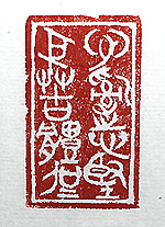 縦横・・5x3cm 今の己の状態を戰國篆文で刻した、「心亂志堅身苦體 剛」(心は亂るるも志は堅く身は苦しきも體は剛なり)で ある。例え心身が亂苦も中でのたうち回ろうとも、志體 は未だ堅剛である。季節は陽春、葉を落とした樹木も 再び芽吹く、ならば己も再び芽吹かん、可能な限り日常 生活を樂ませて頂く。其れが己にとっての大命題、「生き 抜く」と言う事であれば、さあ「生」に向かって邁進しよう。 |