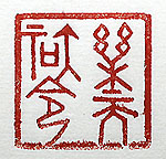 縦横・・3x3cm 『易經』の繋辭上の一句を、甲骨文で刻した「樂天知命」 (天を樂しみ命を知る)である。天命を悟って人生を樂し む事である。孔子は「五十にして命を知る」と言っている が、己は既に七十の半ばである。斯くあらば此處から先 はおまけであろう、天命に從って淡々と進むだけで、病 も亦た一つの樂しみとして、「樂病知命」の境地に身を 置きたいと願っている。 |