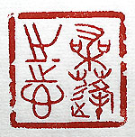 縦横・・3x3cm 古璽文で刻した、「桑蓬之志」(桑蓬の志)である。この 言葉は、『禮記』射義篇の「桑弧蓬矢」(大きく羽ばたく 事を願う意)から出た四字句で、若い人が何か新しい 事を始める場合には、この桑蓬の志を常に抱いて進 んでもらいたい、と願って已まない。己の若い時を省み るに、確かに島根の山奥から東京に出る時には、青雲 の志は有ったが、桑蓬の志はと問われれば、殘念なが ら無かったと言わざるを得ない。故に平々凡々で今に 至っているのである。 |