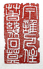 縦横・・5x3cm 田舎の従兄弟から連絡が届き、故家の周りはイノシシ に荒らされまくっているとの事であった。弟が旅だって から既に數年、己も体調に左右され一年祭も行えず、 せめて三年祭は行うわなければあの世の弟に顔向け が出來ない、弟が去って以來何回か春は巡って來たが 、今故家に住む者など居ない、孰れは狐狸の住み家と なるであろう。其の思いを敢えて倒置法で表現し、印篆 で刻した「今誰人住春幾回暮」(今は誰が人か住まん春 は幾回か暮るるに)である。己が生まれ育って十八年 間生活した故家であり、周圍はそれこそ駆け巡った山 野である。決して狐狸の住み家などにはしたく無い、何 とか己の目の黒い内に解決策を見出したいと、願って いる。 |