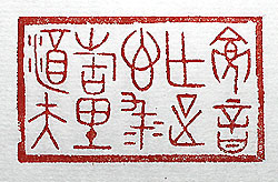 縦横・・3x5cm 恐れ多い事ではあるが、小生の如き輩が「東京安來市 會」の理事を仰せ付かっている。町村合併に因り郷里の 伯太町が安來市伯太町となり、伯太町出身の在京者と 言う事で要請が來たのであるが、己の病魔や諸事との 重なり等に因り、なかなか會議に參加出來ないのは、寔 に心苦しい限りである。年一回の理事會・総會・即賣會 ・懇親會等々に出ると、懐かしい方言に足が止まって話 し込み、ついつい昔から慣れ親しんだ田舎の酒(「金鳳」 と「月山」)を買い求めてしまう。無論摘みは「野焼き」 と「ガンス」である。子供時代に舌が覚えた味は決して 忘れ無い、思い出や懐かしさ等々がない交ぜになった不 思議な美味しさを感じる。古璽文で刻した「郷音止足心 求故里酒夫」(郷音に足を止め心に求む故里の酒かな」 である。早く治療が終わって、ガンスと野焼きを囓りなが ら冷やの月山を、コップ酒でぐいと呑みたい。 |