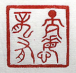 縦横・・3x3cm 『易經』の乾の一句を、金文の回印で刻した「亢龍有悔 」(亢龍悔ること有り)である。上り詰めた龍には悔恨が 有ると言う事で、盛んなものは必ず衰えると言う事であ る。栄枯盛衰は世の習いであり、一番になると後は落 ちるだけであり、一番を維持するのには、大變な努力と 氣力が必要であり、其れを維持するモチベーションは、 實に困難である。寧ろ上り詰めず二番に位置して、常 に一番を窺う努力をする方が、モチベーションは維持し 易いと思う。何故なら具體的な目標が眼前に存在するか らである。 |